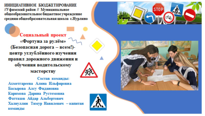 Школьники разработали шесть проектов. Были среди них проектные предложения и по созданию в школе тренажёрного зала, и по выращиванию шампиньонов в подвале школы, и по созданию школьного медиацентра, проектное предложение по «Полиграф-Центру на Школьной», созданию цифровой эколого-химической лаборатории, а также по открытию центра углублённого изучения правил дорожного движения и обучения водительскому мастерству. После ознакомления с работами команд учащиеся 5-11 классов провели голосование. В результате, победил проект «Фортуна за рулём»(Безопасная дорога – всем!) - центр углублённого изучения правил дорожного движения и обучения водительскому мастерству.